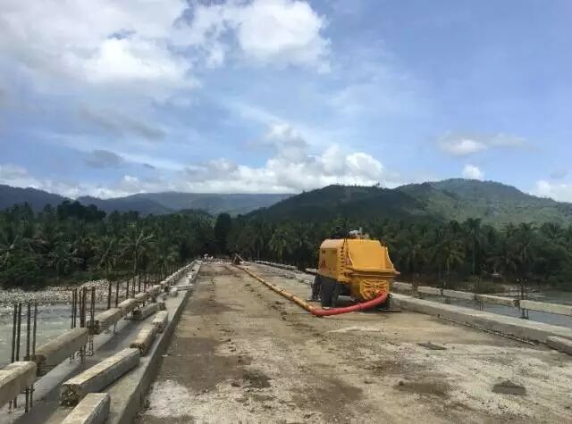 位于菲律賓南部的行政大區(qū)Caraga(卡拉加),徐工混凝土拖泵及攪拌車正在聯(lián)合參建當地某公路大橋項目。