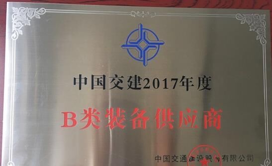 圓友重工榮獲“中國交建2017年度B類裝備供應(yīng)商”