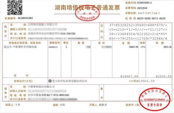 中聯(lián)重科誕生工程機(jī)械行業(yè)首張電子發(fā)票