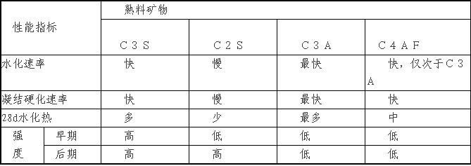 硅酸鹽水泥熟料的礦物組成,是影響水泥凝結(jié)硬化的主要因素,四種熟料礦物的水化、凝結(jié)硬化特性見(jiàn)表2—1所示。