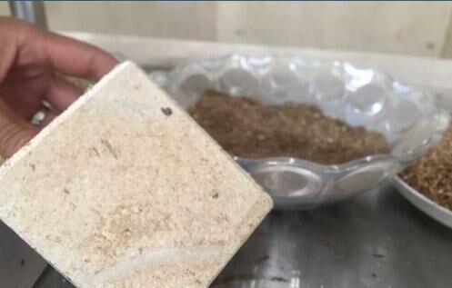 上生產(chǎn)出來(lái)的鋼鈣秸稈實(shí)心墻板已擺放得整整齊齊?!斑@些機(jī)器‘吃’進(jìn)去的是秸稈,‘吐’出來(lái)的是墻板,正適合當(dāng)作建筑外墻屋面材料?!痹摴窘?jīng)理文華銀拿出了一塊墻板樣品,側(cè)切面能清晰地看到秸稈碎屑。盡管摸上去第一感覺(jué)像木頭,但用手使勁兒敲打卻能感受到足夠的硬度,“每平米墻板所含的秸稈能達(dá)到60%至80%?!?
