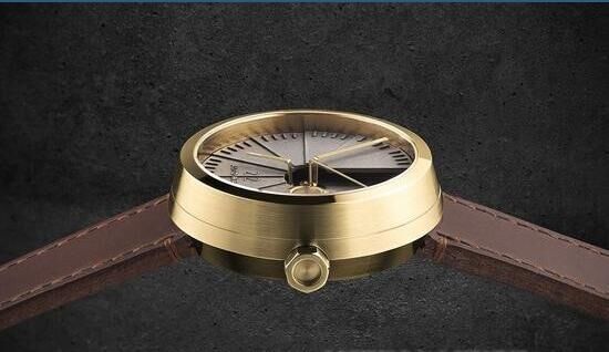 腕表的表殼由兩種材質(zhì)制成,一種是光滑的黃銅,一種是耐用不銹鋼;在3點鐘位置配備獨一無二的日期窗。