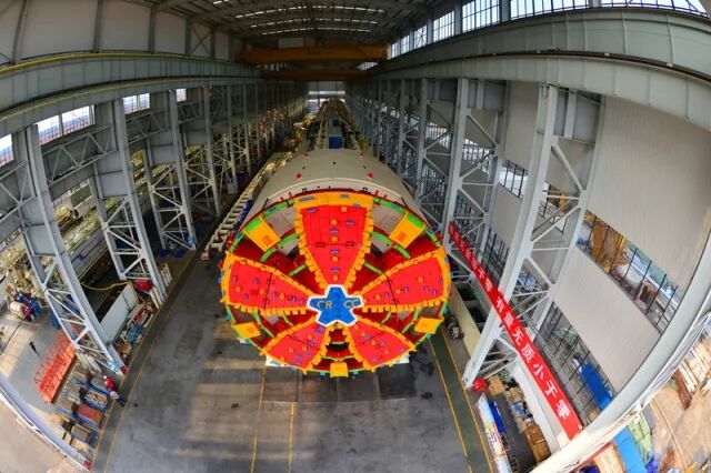 ▲鐵建重工自主研制的國產首臺常壓換刀式超大直徑泥水平衡盾構機