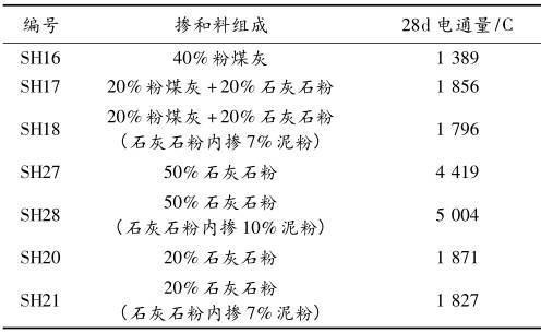 石灰石粉混凝土配合比及對電通量的影響