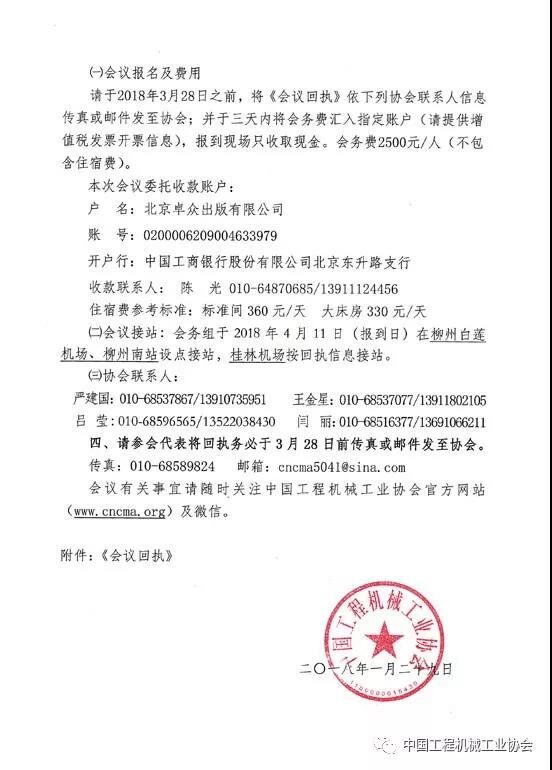 會議的主要內(nèi)容:聽取國家宏觀經(jīng)濟和工程機械行業(yè)發(fā)展形勢報告;審議協(xié)會2017年工作總結(jié)和2018年工作計劃;頒發(fā)2017年工程機械信用等級評價證書和牌匾及有關(guān)獎項;圍繞行業(yè)熱點問題舉行高層論壇,本次高層論壇分為主論壇和兩場平行論壇,平行論壇一:綠色智能與高質(zhì)量發(fā)展;平行論壇二:“一帶一路”與全球化品牌。詳情見下文: