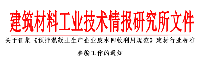 【標(biāo)準(zhǔn)參編】關(guān)于征集《預(yù)拌混凝土生產(chǎn)企業(yè)廢水回收利用規(guī)范》建材行業(yè)標(biāo)準(zhǔn) 參編工作的通知!