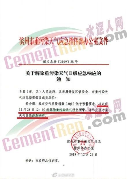 同期,山東省濱州市重污染天氣應急指揮部辦公室也發(fā)布了《關于解除重污染天氣II級應急響應的通知》稱,定于12月26日12:00起解除重污染天氣橙色預警,并終止重污染天氣II級應急響應。