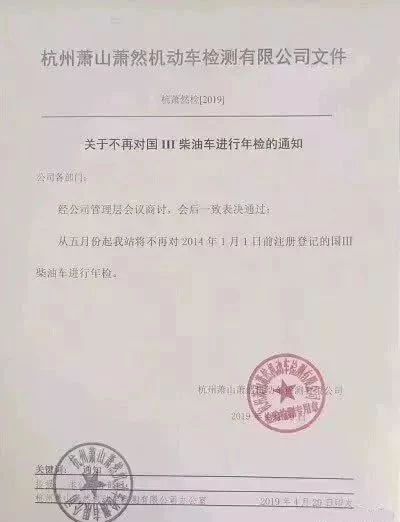 年初有消息稱,從5月起,杭州蕭山蕭然機動車檢測站將不再對2014年1月1日前注冊登記的國三柴油車進(jìn)行年檢!