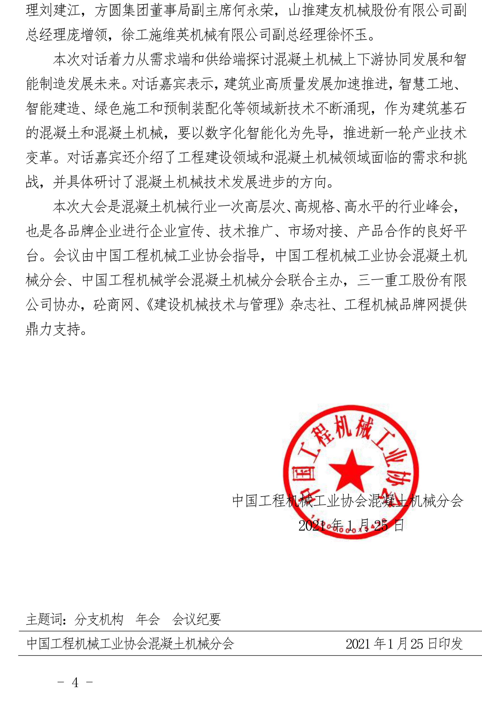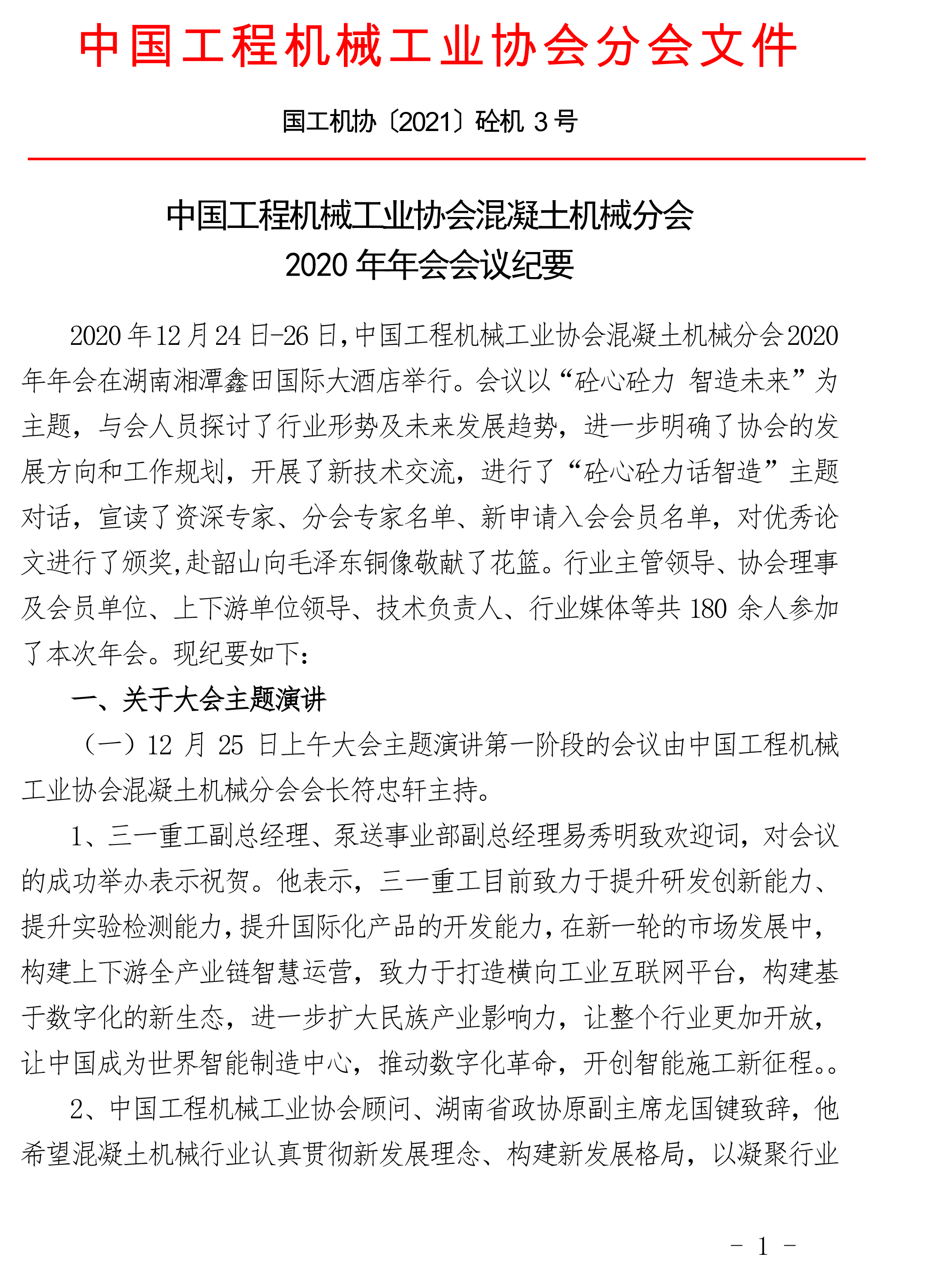 中國(guó)工程機(jī)械工業(yè)協(xié)會(huì)混凝土機(jī)械分會(huì) 2020年年會(huì)會(huì)議紀(jì)要