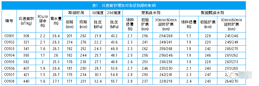 2.1 水泥比表面積的影響