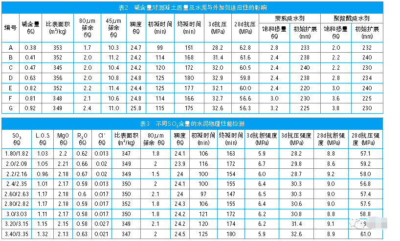 堿含量對混凝土質(zhì)量及水泥與外加劑的適應(yīng)性有重要的影響,水泥中過量堿的存在會使水泥漿體的塑化效果變差,流動性的經(jīng)時損失變大。