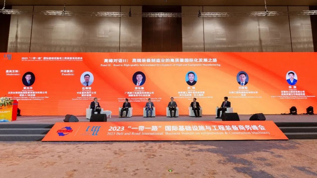 第二場(chǎng)高峰對(duì)話(huà)由北京出海領(lǐng)航國(guó)際管理顧問(wèn)有限公司創(chuàng)始人、總經(jīng)理黃兆華主持,邀請(qǐng)中聯(lián)重科、廣西柳工、山推、鐵建重工、安徽合力公司高管,圍繞“高端裝備制造業(yè)的高質(zhì)量國(guó)際化發(fā)展之路”展開(kāi)對(duì)話(huà)交流,對(duì)話(huà)嘉賓聚焦后疫情時(shí)代國(guó)際基礎(chǔ)設(shè)施發(fā)展的機(jī)遇,分享工程裝備制造業(yè)高質(zhì)量發(fā)展的經(jīng)驗(yàn)和建議。