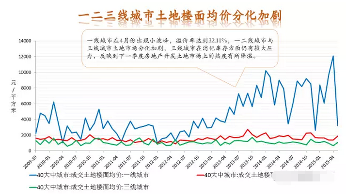 從不同級別的城市看,一線城市環(huán)比3月上漲幅度達到14.1%,漲幅最大,二線城市漲幅也達到7.3%。而三四線城市則并不樂觀,整體市場走勢出現(xiàn)了明顯的分化趨勢。