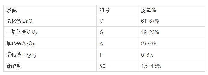 這里是硅酸鹽水泥熟料(水泥的干粉版本)的一般配方。配比隨應(yīng)用變化,取決于水泥所需的材料性能。