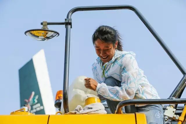 丁旭來到戶外練習場后,仔細將夏季用的柴油灌入挖掘機中,旁邊的同事提醒說:“可別灑出來”,讓她不禁靦腆地笑起來。