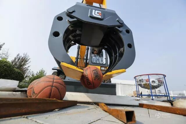 丁旭打開車門,坐進挖掘機艙內(nèi),將地上的籃球一個個用吊臂抓取,進行遠距離投籃。為了方便直視籃筐,她將眼前的玻璃窗也卸掉了。她每天都會像這樣頂著烈日在戶外練習一整天。