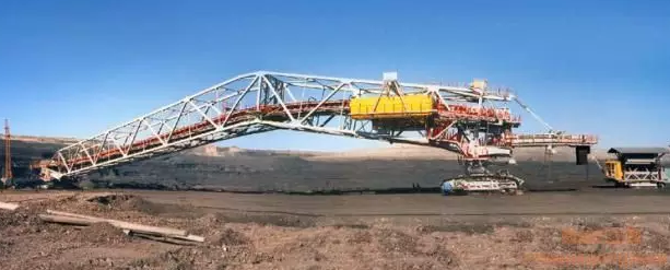排土能力達到34000噸/小時,臂長超過120米。皮帶排土機為移動式連續(xù)工作的排料設(shè)備,它們將來自可移動梯段皮帶運輸機的物料排卸在料堆上,借助皮帶轉(zhuǎn)載車和皮帶滑行轉(zhuǎn)載車將物料輸送到排土機。排土機有能力堆高低地、作為行駛路面的平盤,以便隨后用做新采區(qū)的卸料、堆高。除此之外,還可以使用一部皮帶排土機為可移動梯段皮帶運輸機堆起一個高平面。說白了,它就是一個堆土的設(shè)備嘍~