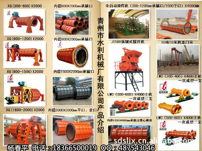 如:規(guī)格在長(zhǎng)度2米,內(nèi)徑在300--1000MM的懸輥式制管機(jī)需2.8萬(wàn)元左右,模具投資在6萬(wàn)元左右,再加上其他輔助設(shè)備:喂料機(jī),攪拌機(jī),航吊等總投資有20萬(wàn)就可以周轉(zhuǎn)營(yíng)業(yè)。