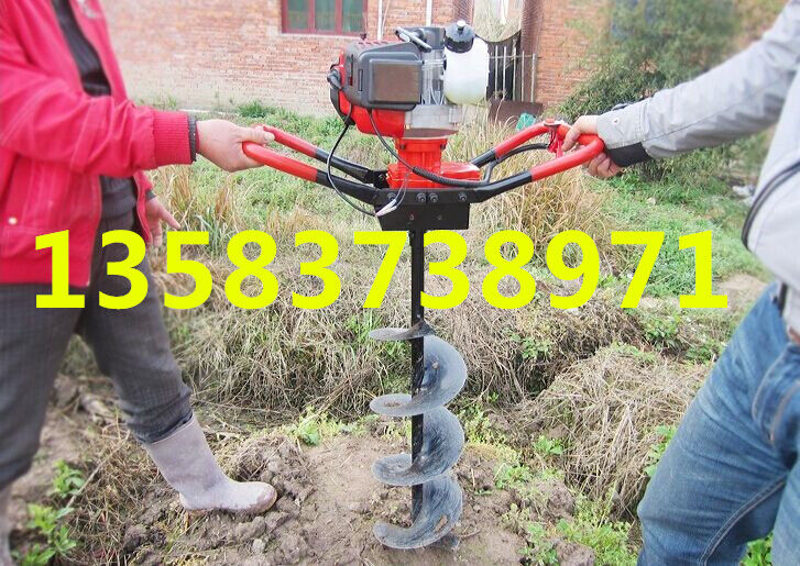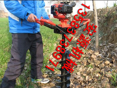 地鉆由小型通用汽油機,齒輪箱及特殊設(shè)計的鉆具組成.適合在土地,凍土,冰層上打孔.廣泛用于園林,種植,植樹,物探,道路建設(shè)等領(lǐng)域  2.鉆頭采用錳鋼合成更加的堅硬。對硬土質(zhì),超硬土質(zhì),粘土,凍土等都能工作。   3.地鉆可根據(jù)樹種,選配多種規(guī)格的鉆頭,以滿足用戶需要。 4.地鉆能夠讓人們從繁重的體力勞動解放出來,廣泛應(yīng)用于植樹造林,栽種果林、籬笆、及秋季給果樹施肥等。適合各種地形,效率高,便于攜帶及野外田地作業(yè)。   5.地鉆既可以單人操作,又可雙人操作,經(jīng)濟實用。   注意事項:1.使用正品2T(二沖程)FC級機油,嚴禁使用4T(四沖程)機油。   2.嚴禁使用純汽油。   3.嚴格按251的比例兌油. 4.新機器不可高速使用,請低速磨合3小時。   5.嚴禁在高速的時候突然關(guān)停發(fā)動機,否則會使下次開機啟動困難。   6.感覺機器震動異常,請立即停機檢查,是否破損,松動,偏心。   7.嚴禁在有亂石堆的草地上使用。   8.鉆頭有嚴格的尺寸限制,嚴禁私自改裝或使用增大號鉆頭. 9.每工作一段時間清除火花塞、消音器積碳,清洗空氣濾清器,向齒輪箱加注黃油。   10.遇到問題自己無法解決的,不要私自拆裝。   11.機器長時間不用時,應(yīng)該將剩余的燃油倒出,然后發(fā)動機器將化油器內(nèi)的燃油全部燃燒干凈。   12.想讓機器運轉(zhuǎn)更穩(wěn)定,壽命更長請經(jīng)常保養(yǎng)。   安全事項:   A.人身安全:嚴禁在室內(nèi)添加汽油,嚴防火災(zāi);機器運行時,嚴禁手腳靠近鉆頭;清理或檢查機器時必須停機。   B.機器安全:地鉆起動前必須清理草坪上的雜物,確保機器安全運轉(zhuǎn)。