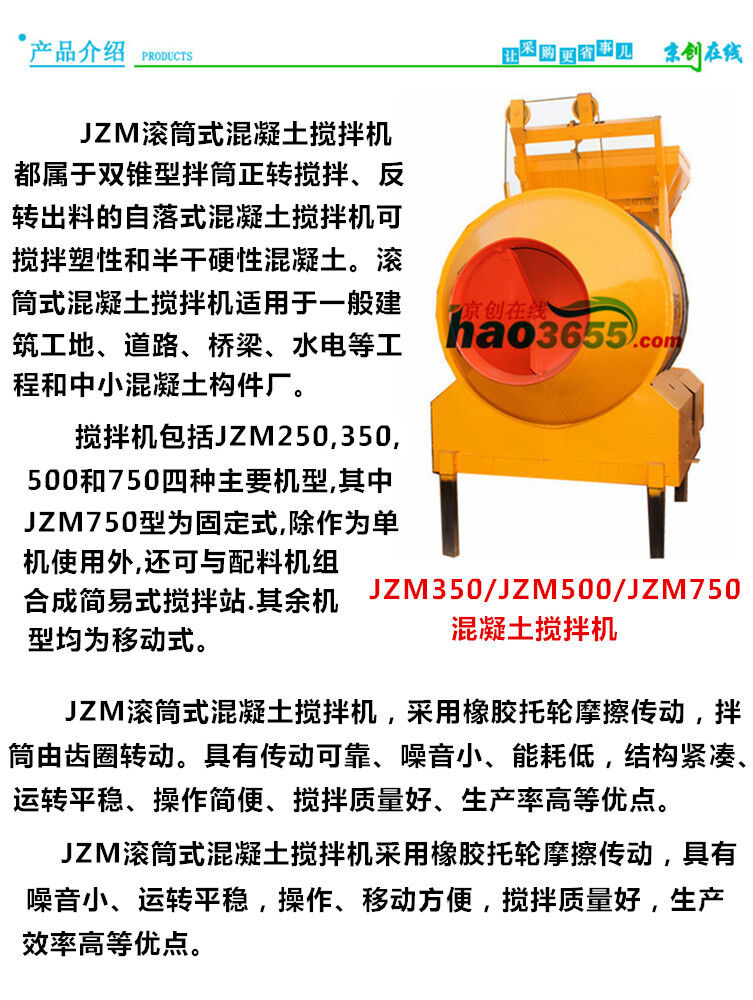 歸屬行業(yè):JZM350滾筒式混凝土攪拌機