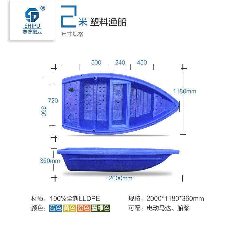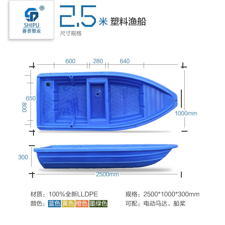 塑料漁船是我公司為漁業(yè)養(yǎng)殖戶開發(fā)的一款既環(huán)保又經(jīng)濟(jì)的新型滾塑產(chǎn)品。塑料漁船采用國外先進(jìn)的滾塑工藝整體加工一次成型,產(chǎn)品設(shè)計(jì)以安全、環(huán)保為基礎(chǔ),是替代玻璃鋼船的理想產(chǎn)品。適用于漁業(yè)養(yǎng)殖,市政河道護(hù)理,農(nóng)家樂,水上娛樂設(shè)施等。船體可裝電動(dòng)馬達(dá),可以配船槳,配頂棚改裝為景觀船!