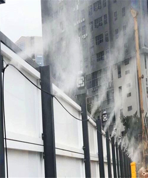 1、圍擋上管路鋪設(shè):水路總開關(guān)設(shè)置在起點(diǎn),主管道設(shè)置成4米,需用三通連接兩端水管,上方插入一段噴霧管,安裝一個(gè)直通將噴嘴與管路相連接。(可根據(jù)實(shí)際需要設(shè)置噴霧管之間的距離)水管由卡扣和螺絲固定在圍擋上。