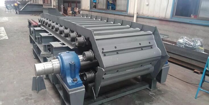 板式給料機的寬度一般按兩倍的最大粒度加上200mm, 還應(yīng)考慮好與破碎機進料口的寬度連接的問題。