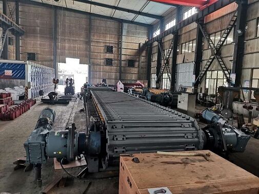 (3)輥體通過卡鍵定位在通軸上,并鎖緊,輥體長度與負(fù)荷槽板上固定運轉(zhuǎn)鏈條的加厚槽板等長并對應(yīng),支承回程槽板負(fù)荷。