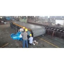 (1)由于石灰石中含有一定量的泥土,部分粘結(jié)在槽板上;負(fù)荷槽板板厚14mm,自重較大,二者造成槽板回程中有一定的負(fù)荷,下托輥輥體磨損較快。