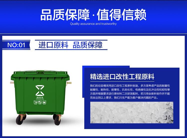 660升環(huán)衛(wèi)垃圾桶廠家,加厚新料戶外垃圾車價格,660升戶外垃圾桶批發(fā),賽普塑業(yè)生產(chǎn)的醫(yī)療垃圾桶采用高密度聚乙烯(HDPE)一次注模而成,絕無焊縫;塑料垃圾桶容易清洗,擦洗后仍光潔如新,目前在建設(shè)綠色重慶,健康重慶,宜居重慶等,而城市的形象都關(guān)系到垃圾桶,垃圾桶是城市中不可或缺的環(huán)保設(shè)施,如小區(qū)垃圾桶,街道垃圾桶,660升加厚垃圾桶廠家,加厚新料戶外垃圾桶價格,660升戶外垃圾桶批發(fā)馬路垃圾桶,物業(yè)垃圾桶等等。除了考慮垃圾桶的外形,重要的一點還是垃圾桶的質(zhì)量和容量。我們生產(chǎn)的垃圾桶小到40升,大到上千升。大小容量均有,是物業(yè)及環(huán)保業(yè)的。供應(yīng)重慶各區(qū)各縣各企業(yè)塑料垃圾桶,所有材質(zhì)為PE新料制品。660升加厚垃圾桶廠家,加厚新料戶外垃圾桶價格,660升戶外垃圾桶批發(fā)