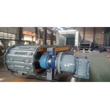 該裝置為直交軸支點(diǎn)浮動式,主軸套裝在行星減慢速器的輸出軸內(nèi),通過瑣緊盤將兩者聯(lián)接起來,其特點(diǎn)是懸掛無基礎(chǔ),重量輕,速比大,由于采用支點(diǎn)浮動式,減少了安裝誤差及支座引起的附加彎矩,提高了傳軸的使用壽命,拆裝及維修方便。