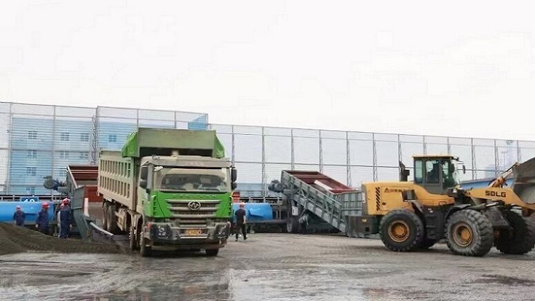 2)側(cè)傾自卸運煤汽車直接卸煤至地表給料機的接收料斗;
