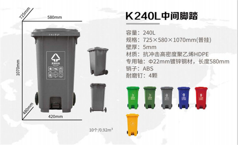 240L塑料垃圾桶/塑料環(huán)衛(wèi)垃圾桶,桶蓋密合,可防止異味散發(fā),雨水侵入,蚊蠅滋生,桶身可相互套疊,方便運(yùn)輸,節(jié)省儲運(yùn)空間與費(fèi)用,桶內(nèi)外表面光潔,便于倒空垃圾與清洗,垃圾桶設(shè)計(jì)符合 人體工程學(xué),輕便耐用,移動靈活。產(chǎn)品賣點(diǎn)。240L塑料垃圾桶價(jià)格不浪費(fèi),讓城市更美觀少占地:生活垃圾中有些物質(zhì)不易降解,使土地受到嚴(yán)重侵蝕。垃圾分類,去掉能回收的,不易降解的物質(zhì),減少垃圾數(shù)量達(dá)50%以上。少環(huán)境污染:廢棄的電池含有金屬。約資源鎘等有害的物質(zhì)。