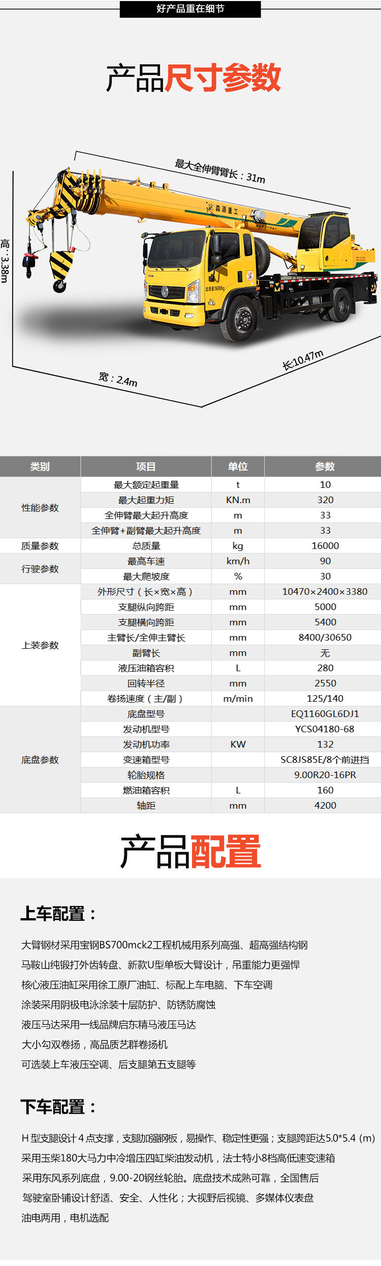 1、支腿跨距5.0*5.4(m),整車穩(wěn)定性更強