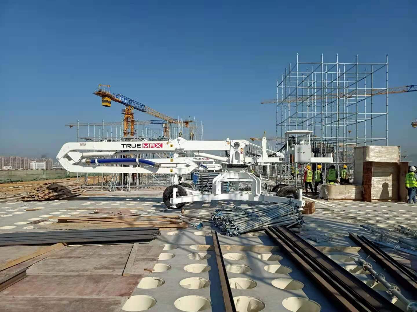 17米車輪式混凝土布料機,可以就近遷場移動,這款布料機液壓驅(qū)動,能無線遙控和有線遙控兩種選擇,能360°旋轉(zhuǎn)布料,布料范圍廣,澆筑質(zhì)量好。