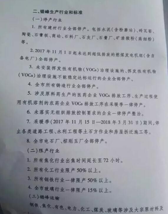 二、錯峰生產的時間安排:大連市停窯時間5個月,自2017年11月15日-2018年4月15日;其他城市,停窯時間6個月,自2017年11月1日-2018年4月30日。
