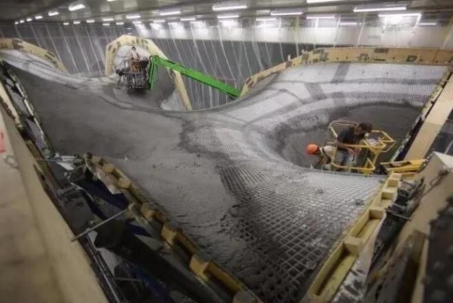 據(jù)了解,工程師們在打造過程中并沒有采用定制、一次性的木頭或泡沫支架,而是使用了他們自己設(shè)計(jì)的一種新技術(shù)。一張鋼索網(wǎng)被拉伸到想要的形狀,然后再在上面放置聚合織物形成一個靈活的模板。之后形狀可以通過算法控制,它能將力均勻地發(fā)布在各鋼索間并決定每個部分所需要的混凝土量。之后,鋼索網(wǎng)可以被拆掉、重復(fù)使用和重新調(diào)整。