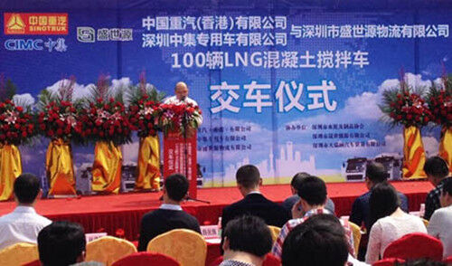這批100輛LNG的大訂單,是深圳市首次大批量進(jìn)入的LNG攪拌車,由深圳市晟世能源有限公司和深圳市盛世源物流有限公司聯(lián)合投資,將采用LNG撬裝加氣站方式,為前海片區(qū)的混凝土攪拌站提供第三方物流服務(wù)。盛世源物流董事長(zhǎng)劉宇明說,之所以選擇中國(guó)重汽的LNG水泥攪拌車,一則是處于對(duì)中國(guó)重汽LNG卡車技術(shù)的信賴,二則是因?yàn)榈胤秸畬?duì)企業(yè)使用環(huán)保車輛給予大力支持。
