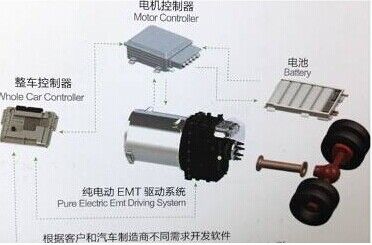 動(dòng)力總成采用電驅(qū)動(dòng)機(jī)械式自動(dòng)變速器,采用四檔自動(dòng)變速傳動(dòng),無離合器,無機(jī)械式同步器,利用電驅(qū)動(dòng)主動(dòng)同步代替?zhèn)鹘y(tǒng)的同步器摩擦被動(dòng)同步,純EMT相比傳統(tǒng)自動(dòng)變速器AMT具有高效率和低成本優(yōu)勢(shì)。