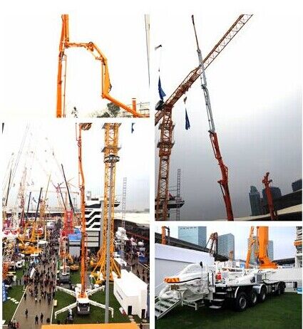 中聯(lián)重科此次參展泵車包括一臺(tái)三橋56米碳纖維臂架泵車和一臺(tái)60米7節(jié)臂橫展臂架泵車。