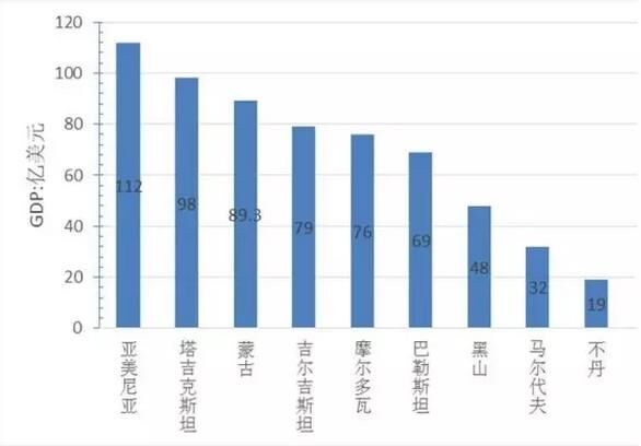 圖2“一帶一路”地區(qū)經(jīng)濟總量后10名的國家