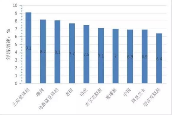 圖3 “一帶一路”地區(qū)經(jīng)濟增速前10名的國家