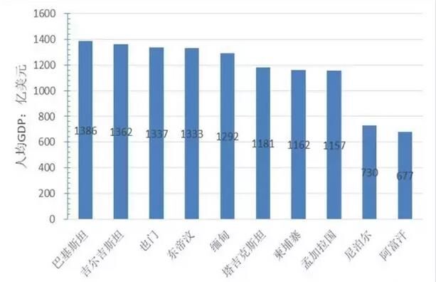 圖5“一帶一路”地區(qū)人均GDP后10名的國家