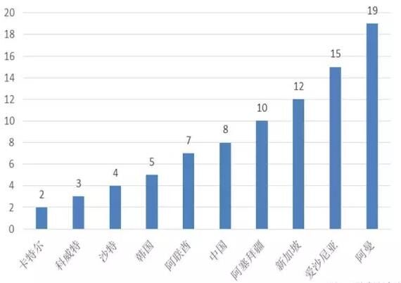 世界經(jīng)濟論壇發(fā)布的《2015-2016全球競爭力報告》,用法律和行政架構、基礎設施、宏觀經(jīng)濟環(huán)境、衛(wèi)生和基礎教育、高等教育和培訓、市場效率、勞動力市場效率、金融市場發(fā)展、技術、市場規(guī)模、商業(yè)環(huán)境完備性、創(chuàng)新12個指標對全球140個國家和地區(qū)的競爭力進行了評估,并對12個指標賦值加權后,得出各國的綜合競爭力排名?!耙粠б宦?/span>”沿線66個國家中,有53個國家的競爭力數(shù)據(jù)在此報告中體現(xiàn)(詳見附表2)。排名位于前70名(140個國家,70名為世界平均水平)的國家有35個,其中新加坡、日本、卡特爾、阿聯(lián)酋、馬來西亞、沙特、韓國、以色列、中國、愛沙尼亞的排名在“一帶一路”沿線國家中位于前10名,在全球的排名分別為第2名、第6名、第14名、第17名、第18名、第25名、第26名、第27、第28名、第30名;中國排名靠前的主要因是宏觀經(jīng)濟環(huán)境良好、市場規(guī)模大,其余10個指標排名均在30名以后;位于后70名的國家31個,其中阿爾巴尼亞、塞爾維亞、尼泊爾、黎巴嫩、不丹、孟加拉國、波黑、埃及、巴基斯坦、緬甸的排名在“一帶一路”沿線國家中位于后10名,在全球的排名分別為第93名、第94名、第100名、第101名、第105名、第107名、第111名、第116名、第126名、第131名??傮w上看,“一帶一路”沿線國家競爭力在全球排名分布比較靠后,整體競爭力能力有待提升。
